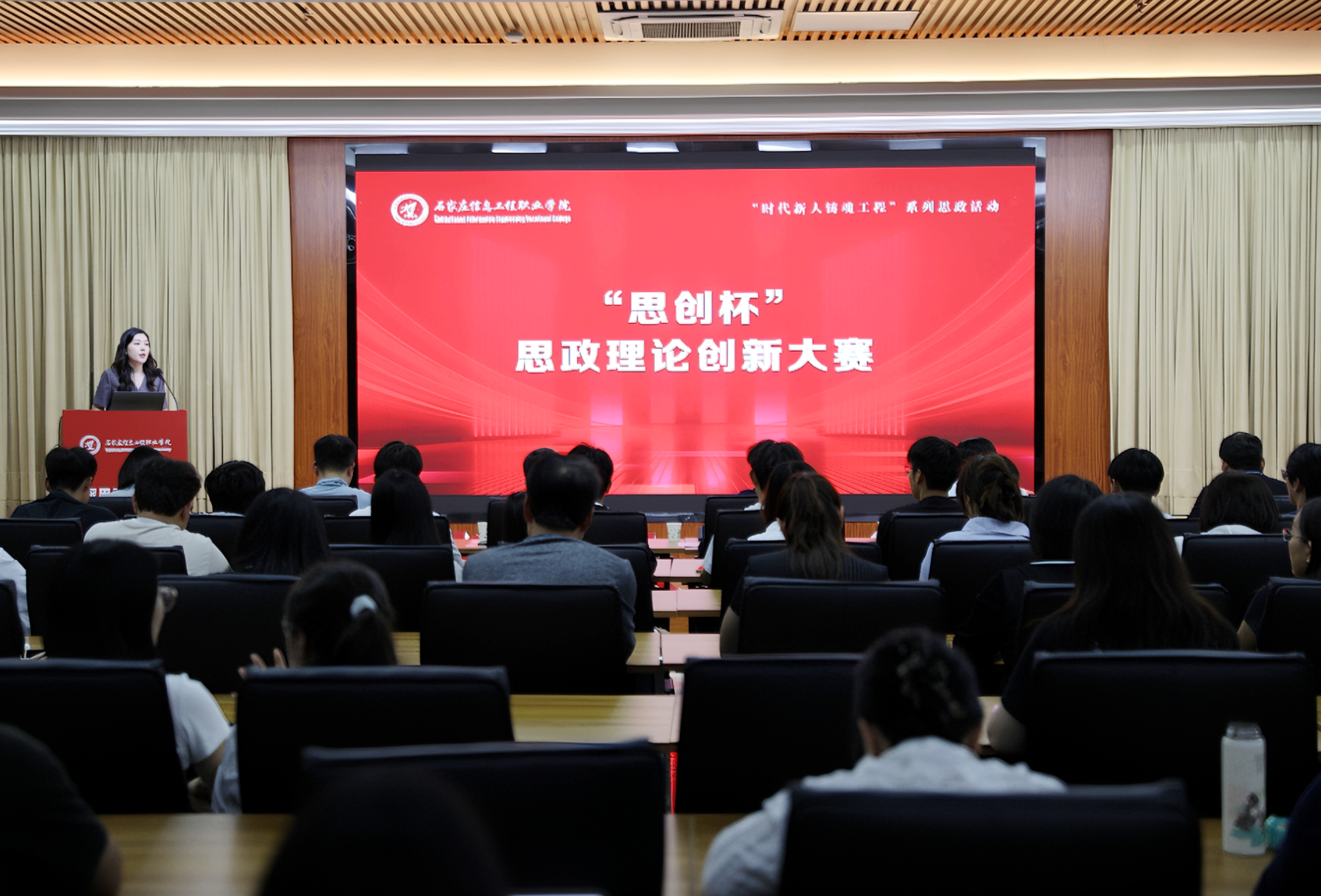 本次大赛紧扣“铸时代新人魂 探思政创新路”主题,旨在通过思政理论创新破解育人实践难题,为培养德技并修的高素质技术技能人才凝聚思想动能。决赛现场,从全院遴选出的12支团队依次进行成果展示与答辩,汇报主题覆盖课程思政深度融合、红色文化创新传承、党建引领育人模式、乡村振兴服务赋能等多个前沿领域,集中展现了我院思政教育与专业教学同向同行的丰硕成果与创新活力。