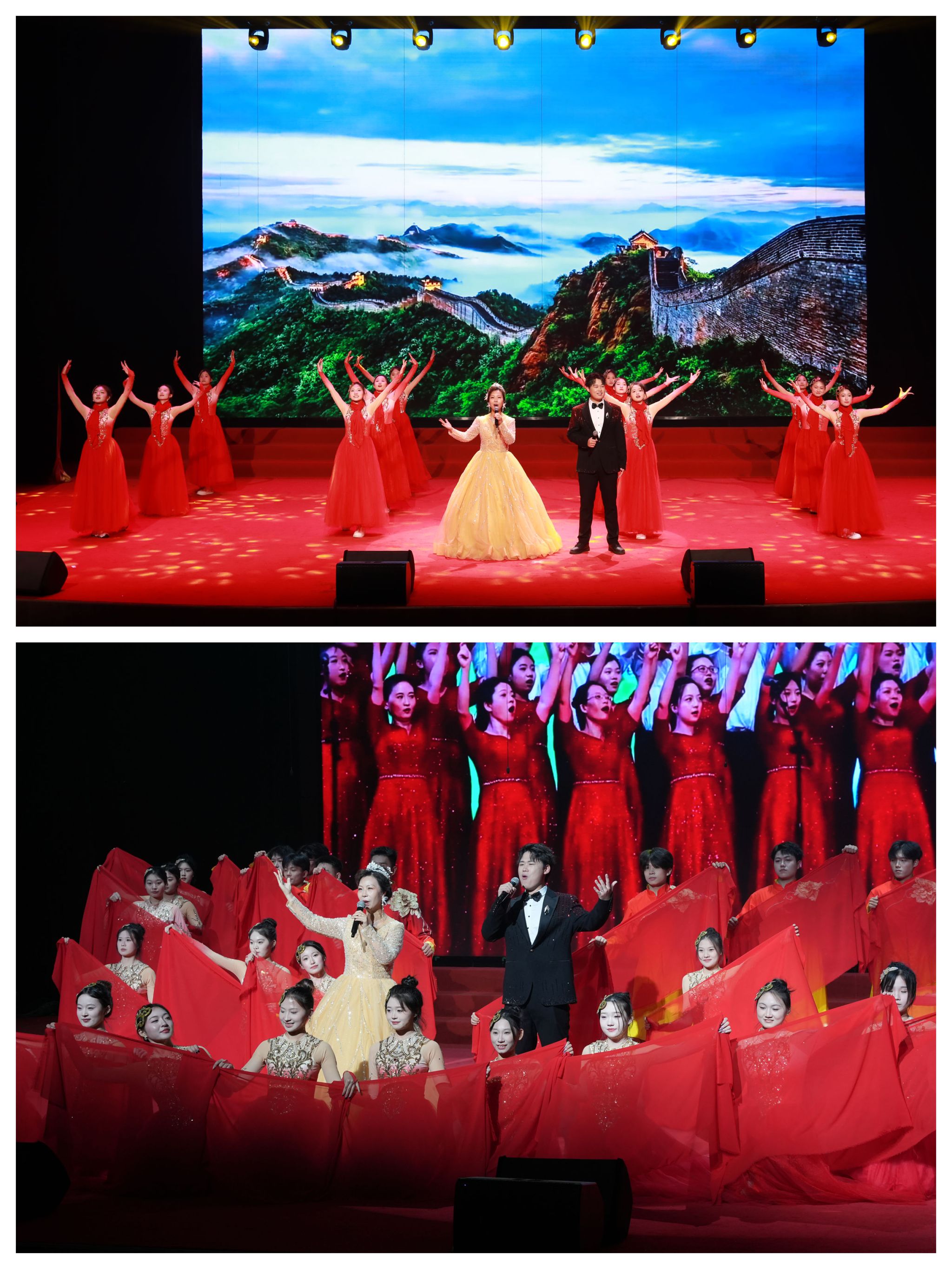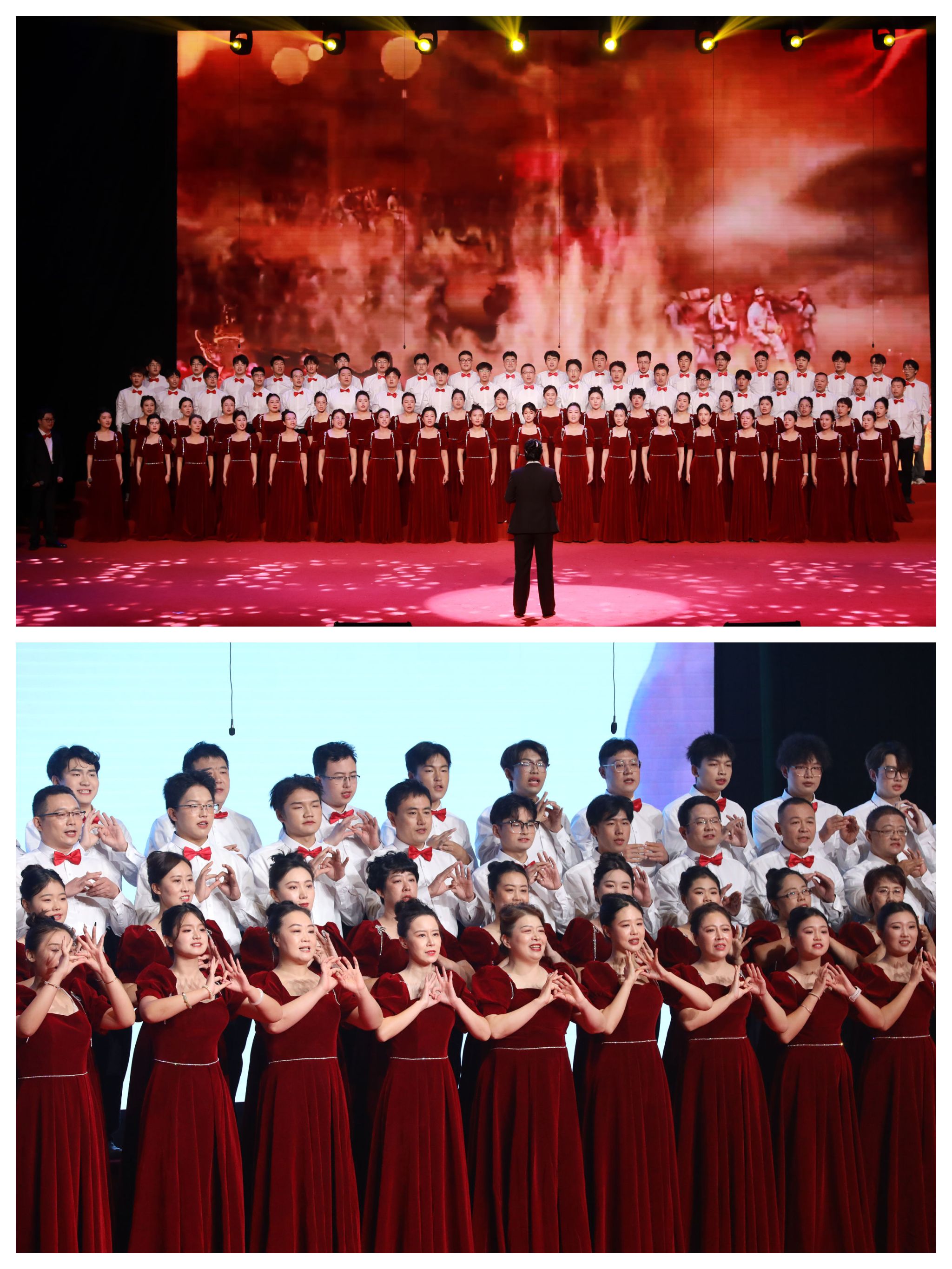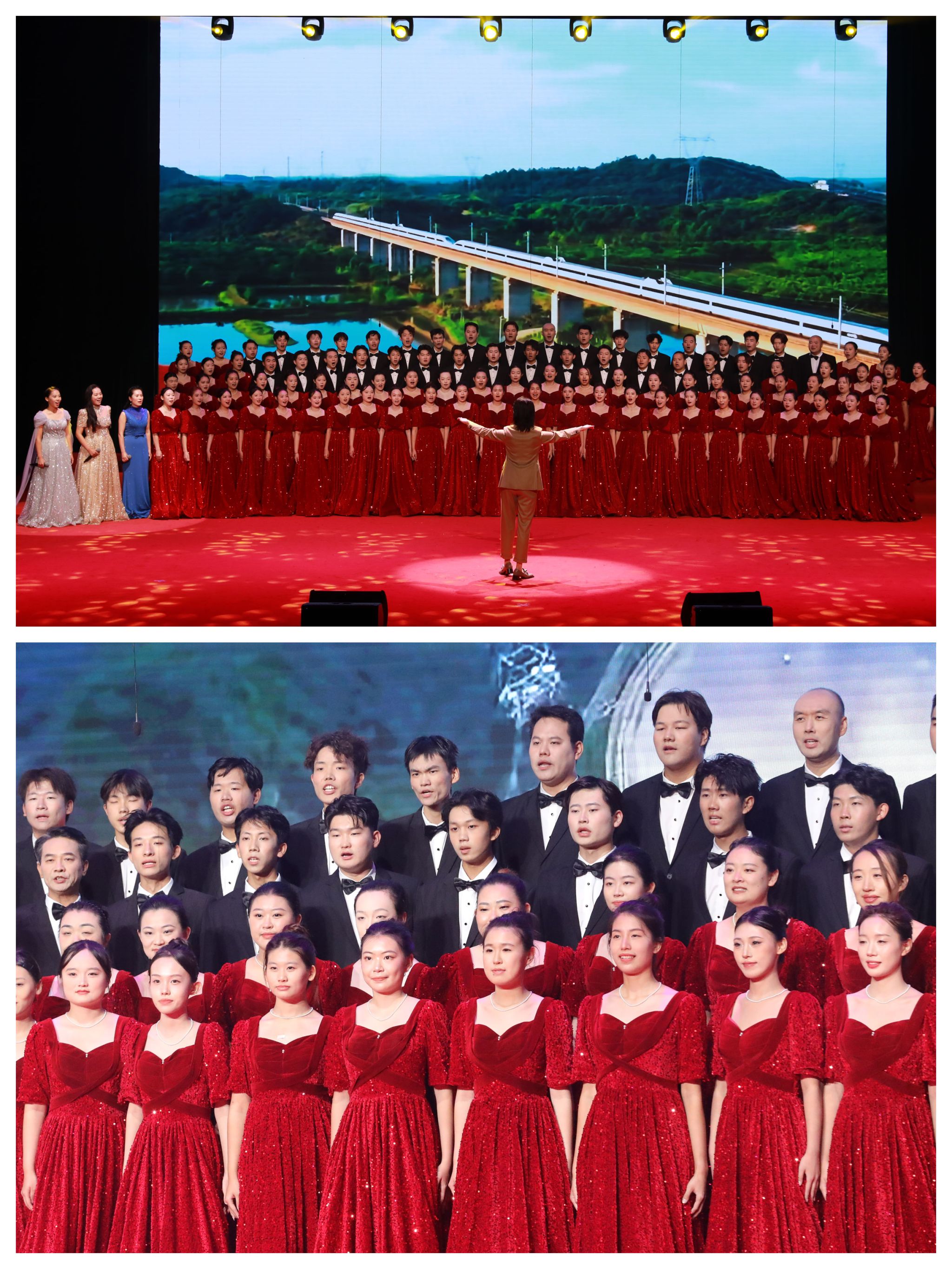 有一句誓言,跨越百年依然滚烫,代代传唱始终深情。马克思主义学院、体育部“团结”合唱团带来的歌曲《没有共产党就没有新中国》《歌唱祖国》,不仅是历史的见证,更是亿万人民心底最真挚的信仰。