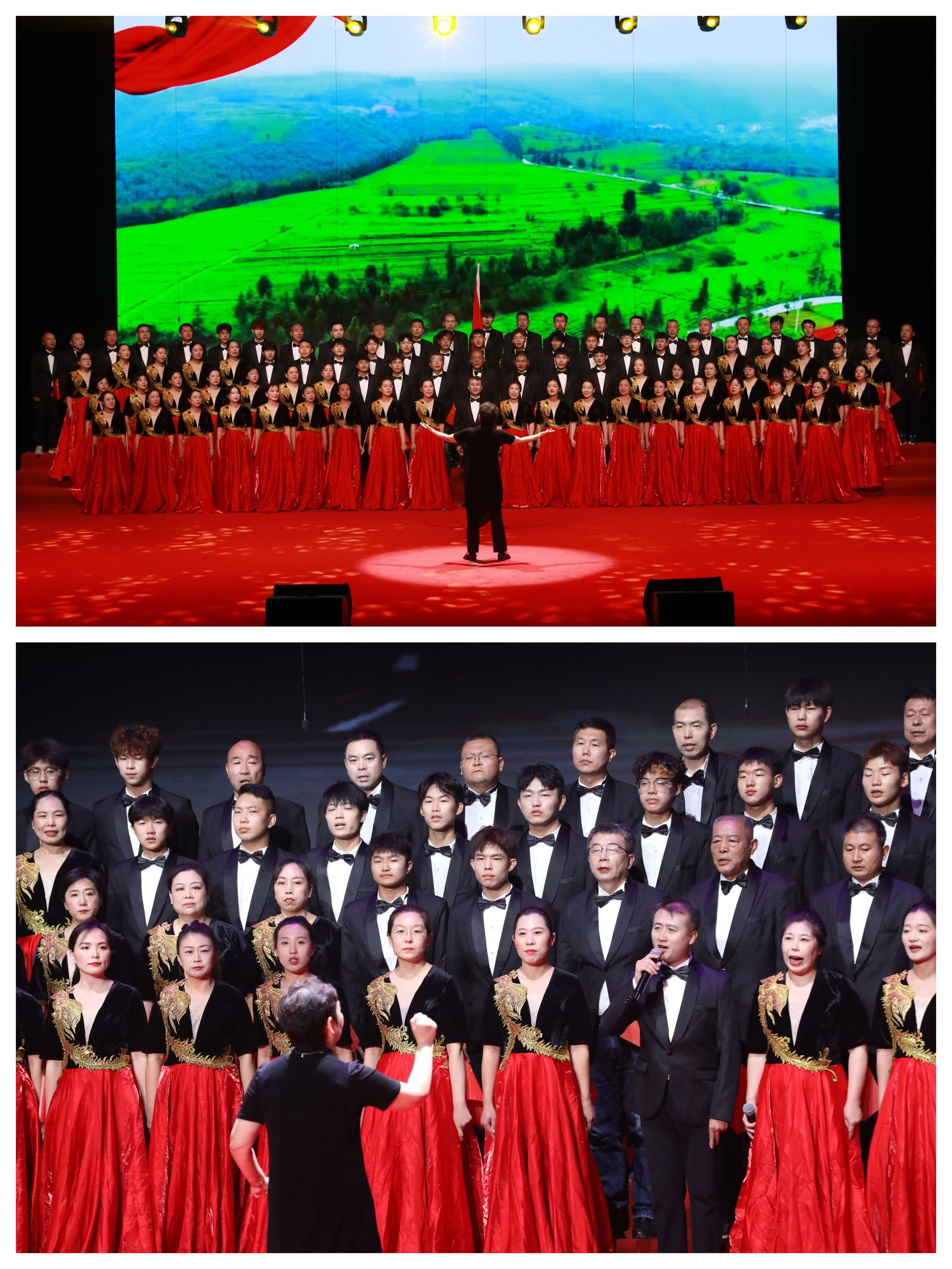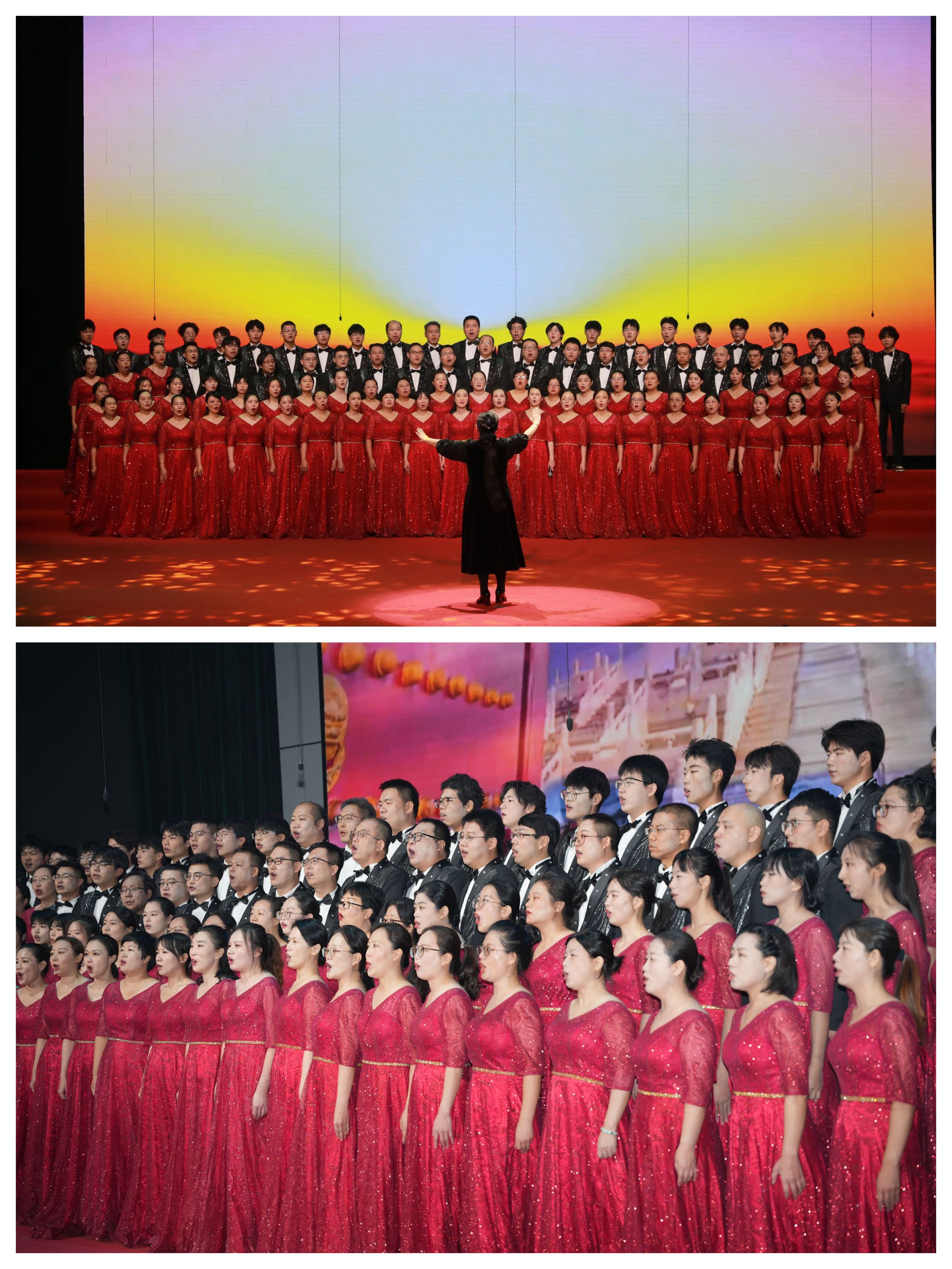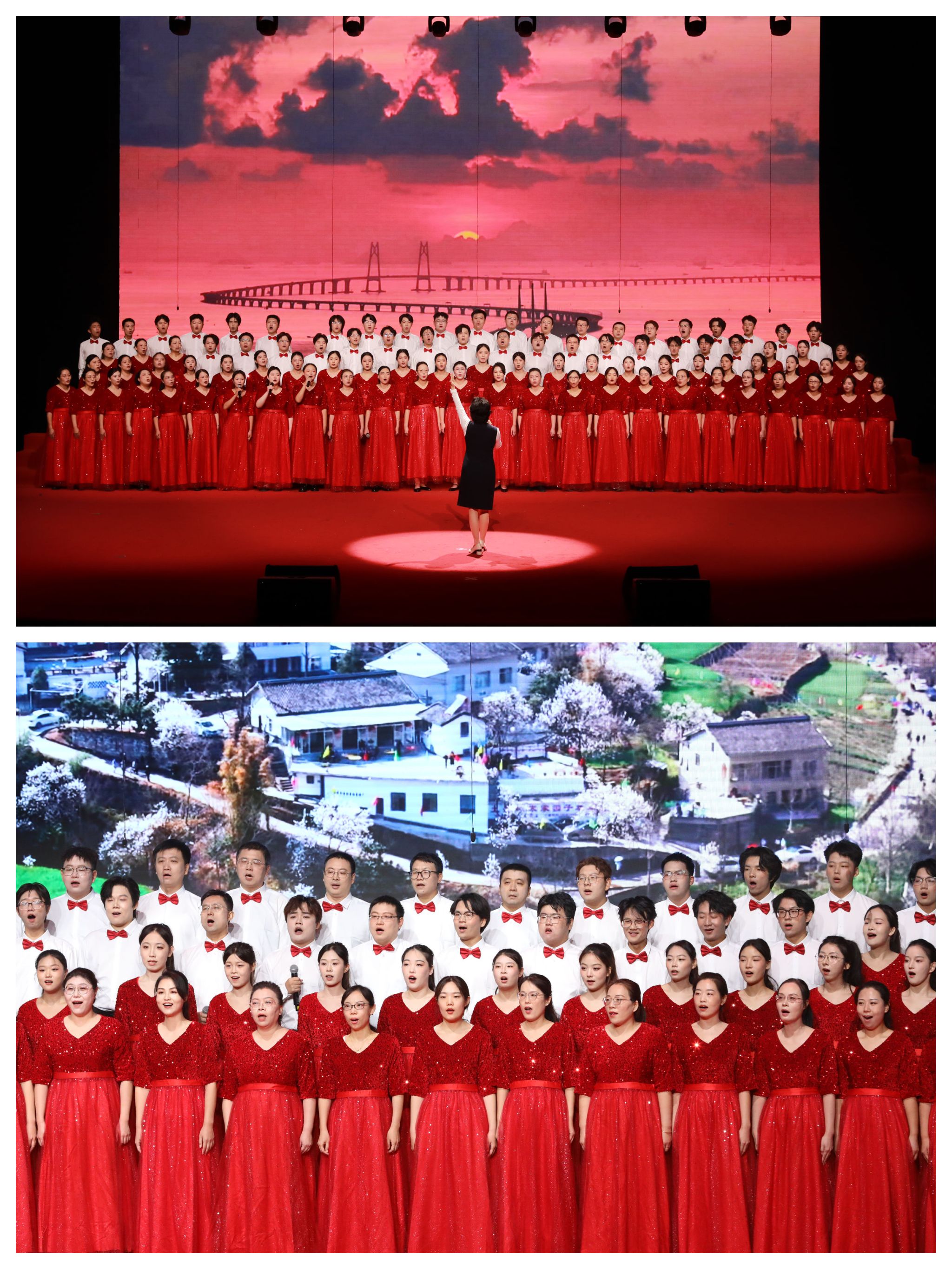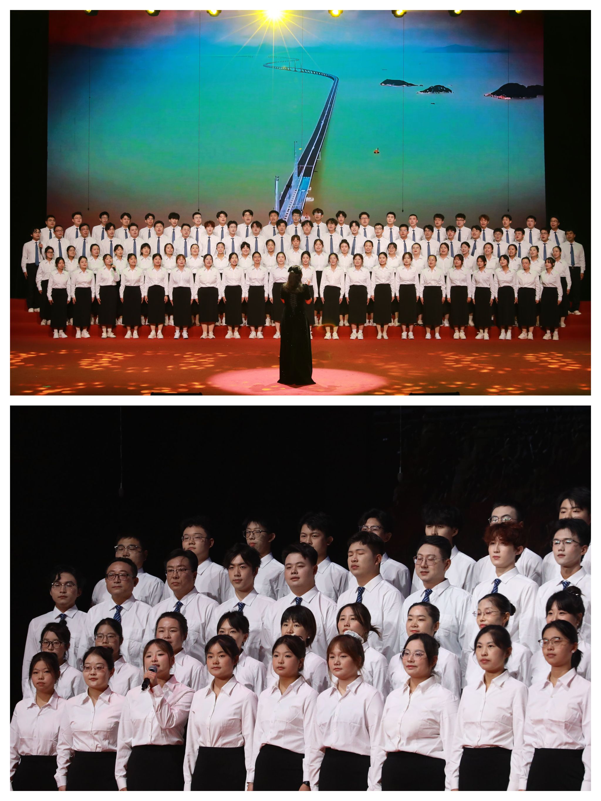 有一句誓言,跨越百年依然滚烫,代代传唱始终深情。马克思主义学院、体育部“团结”合唱团带来的歌曲《没有共产党就没有新中国》《歌唱祖国》,不仅是历史的见证,更是亿万人民心底最真挚的信仰。