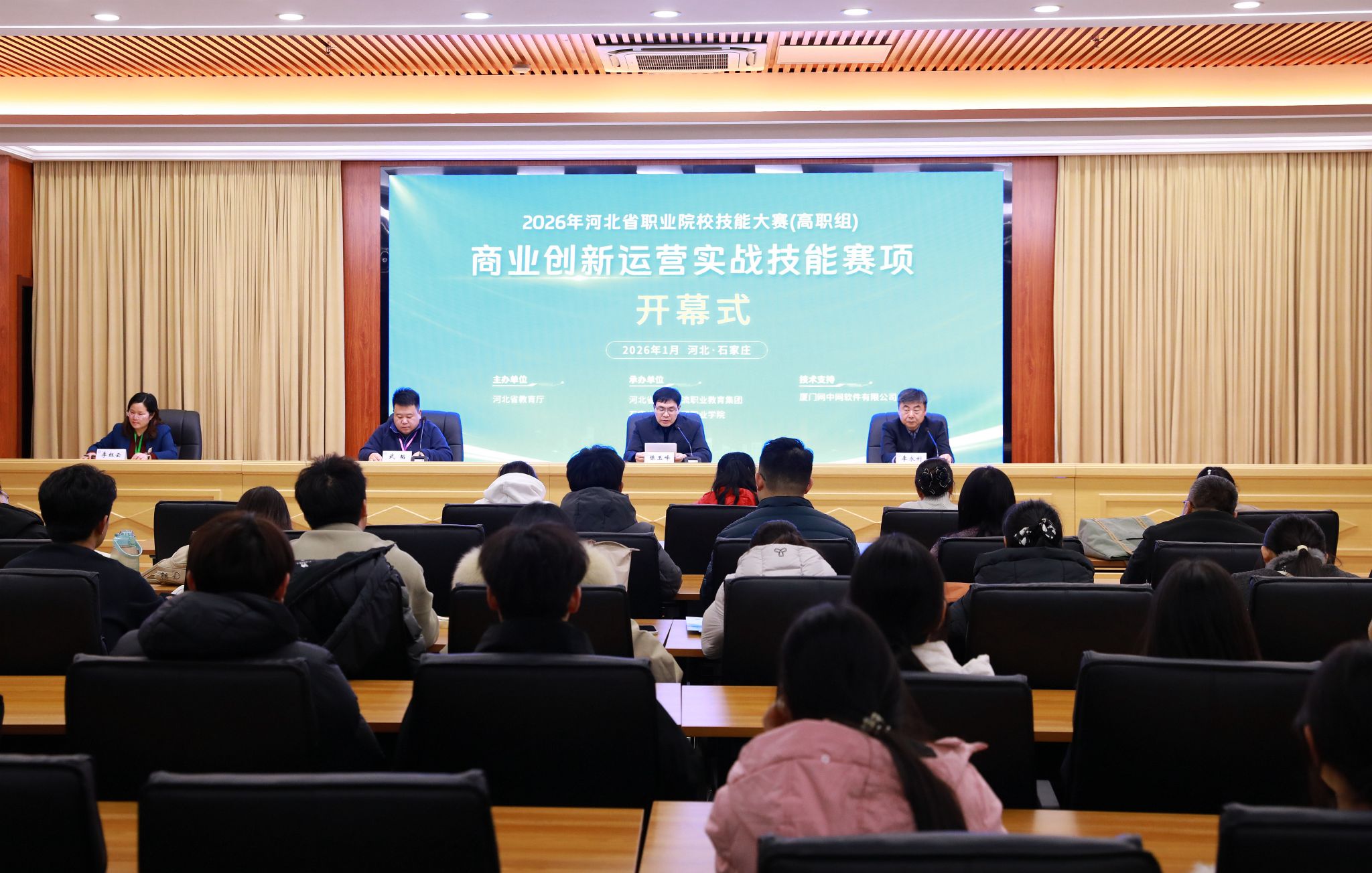1月9日至10日,由河北省教育厅主办的2026年河北省职业院校技能大赛“商业创新运营实战”(高职组)赛项在我院成功举办。本次赛事以“创新驱动 实战赋能”为核心主题,汇聚了来自河北省内的24支参赛队伍、96名参赛选手同台竞技,依托商业模拟运营场景,淬炼新时代商贸物流人才的实战本领与创新思维,搭建起产教深度融合、校企协同育人的优质交流平台。学院副院长陈玉峰出席并发表致辞。