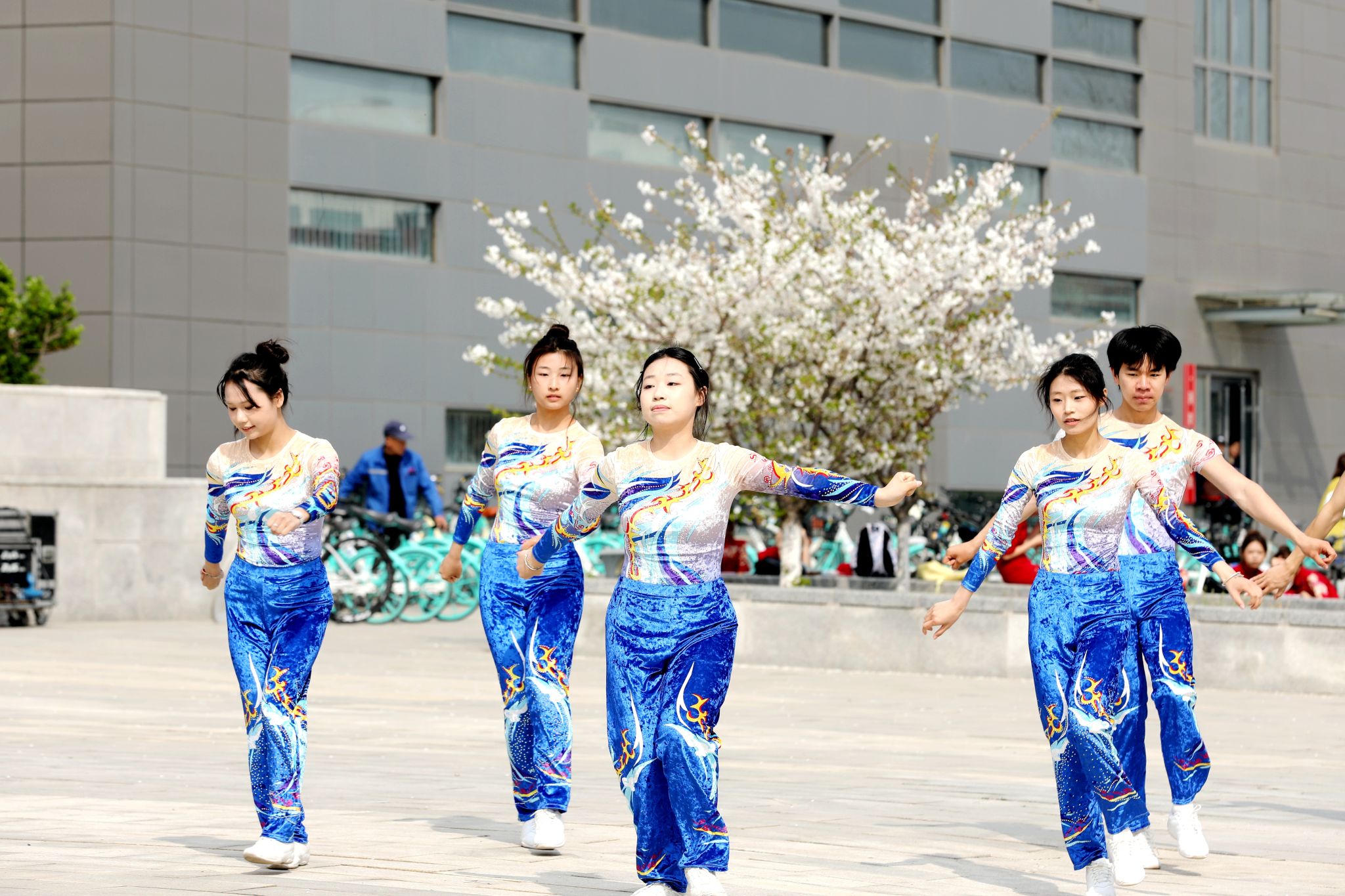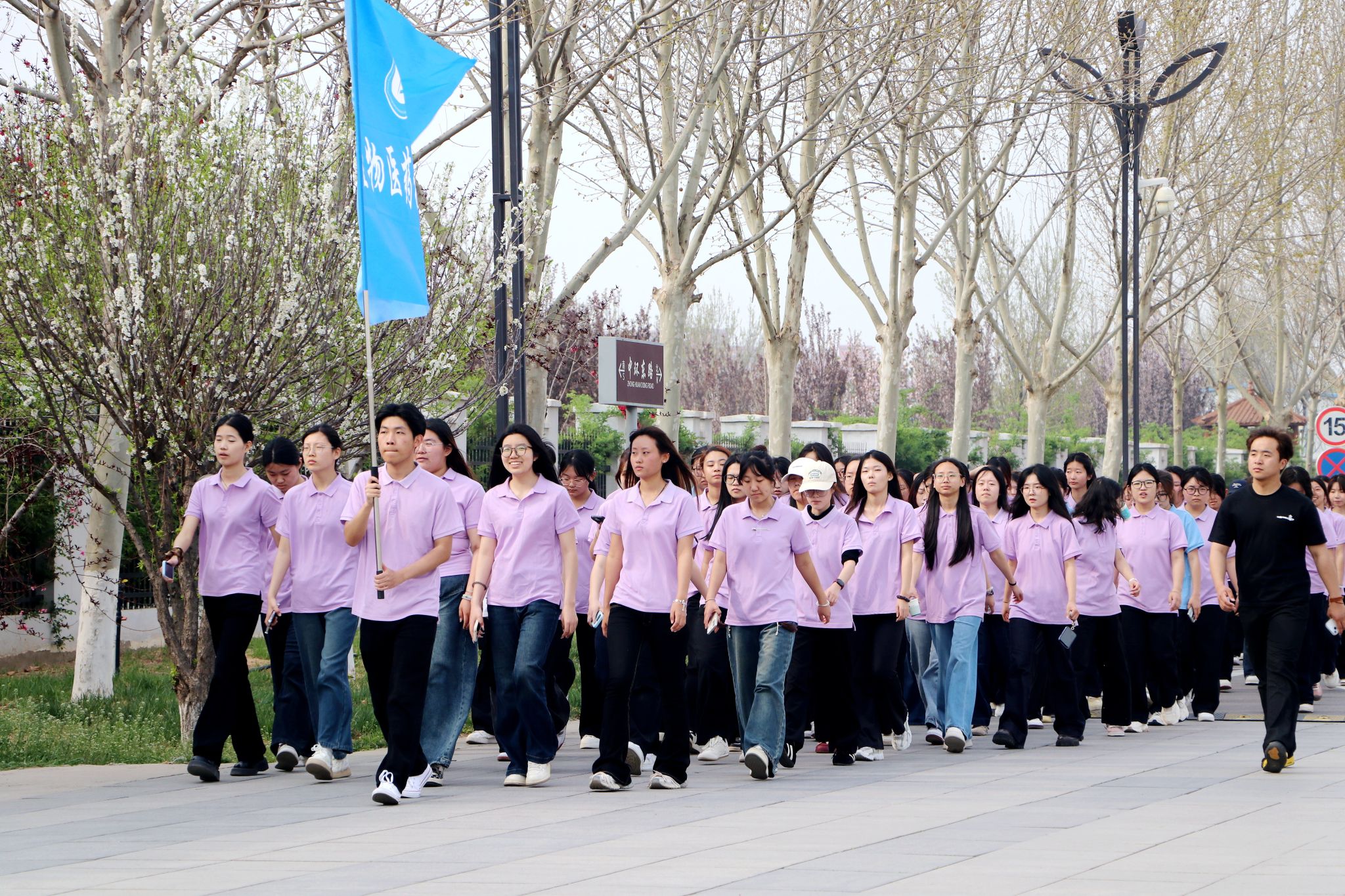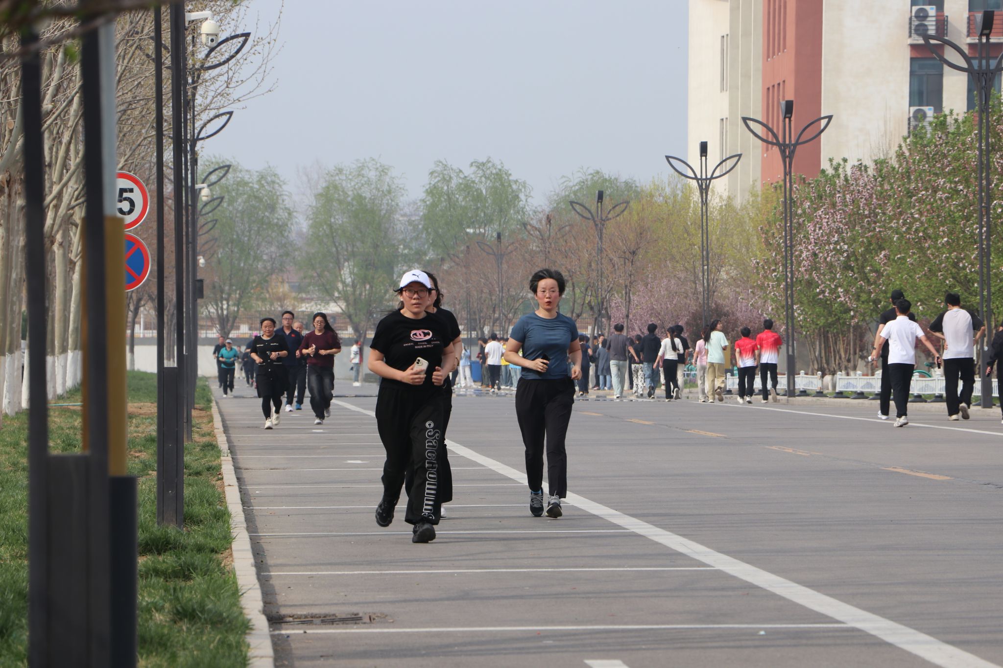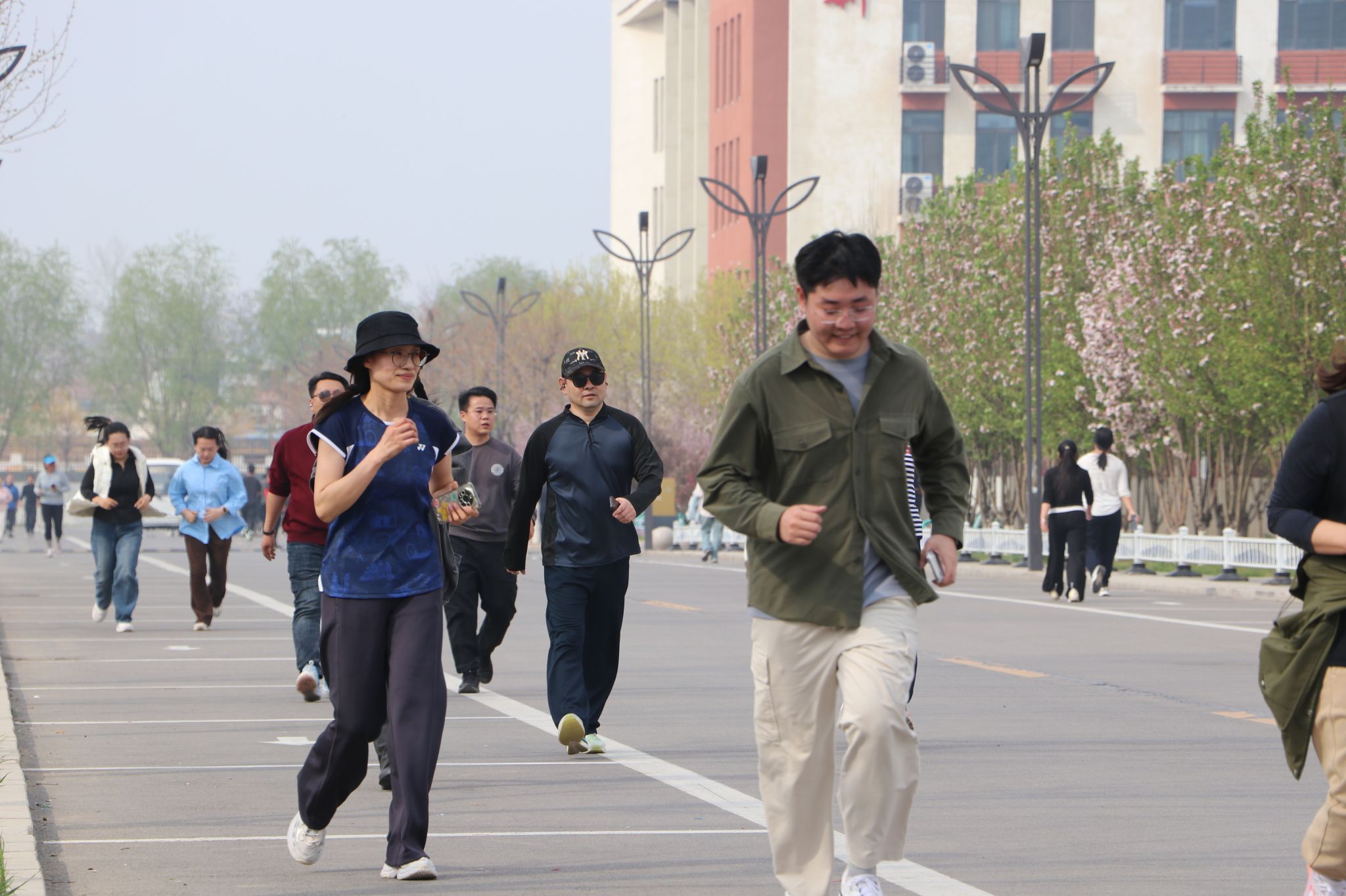 大众健身组的同学们步伐从容,笑语盈盈,结伴穿行于春意盎然的校园。