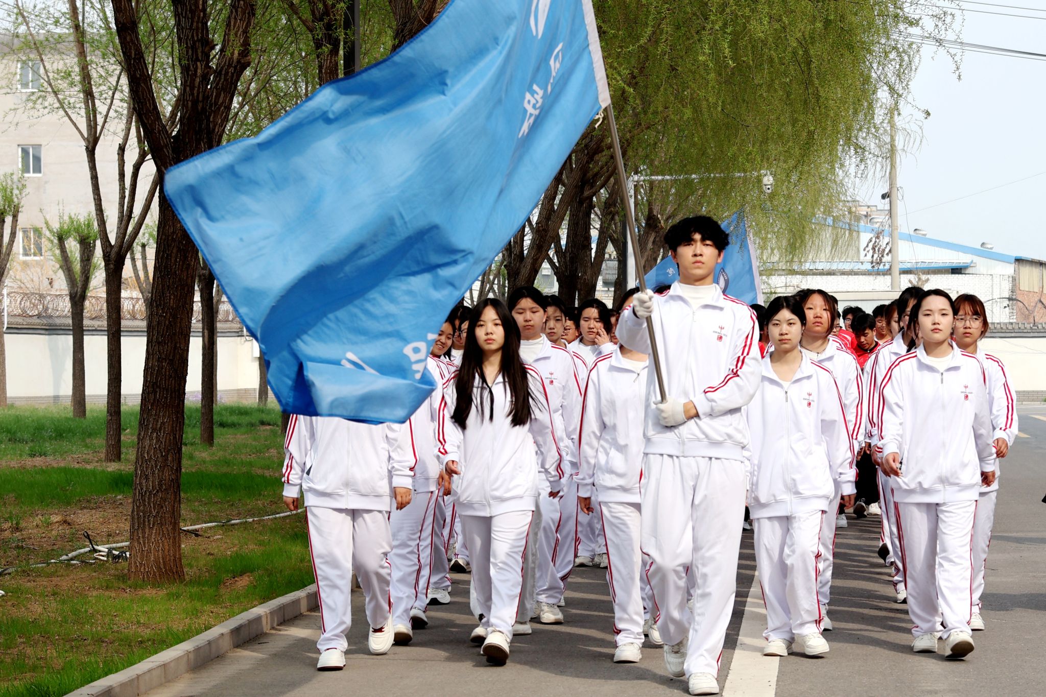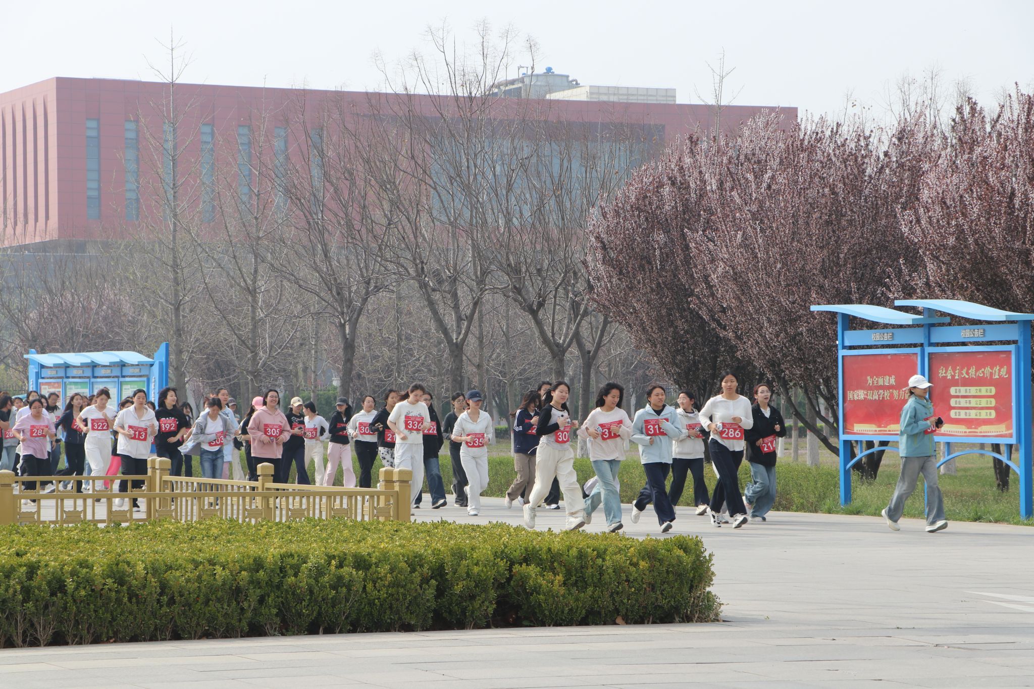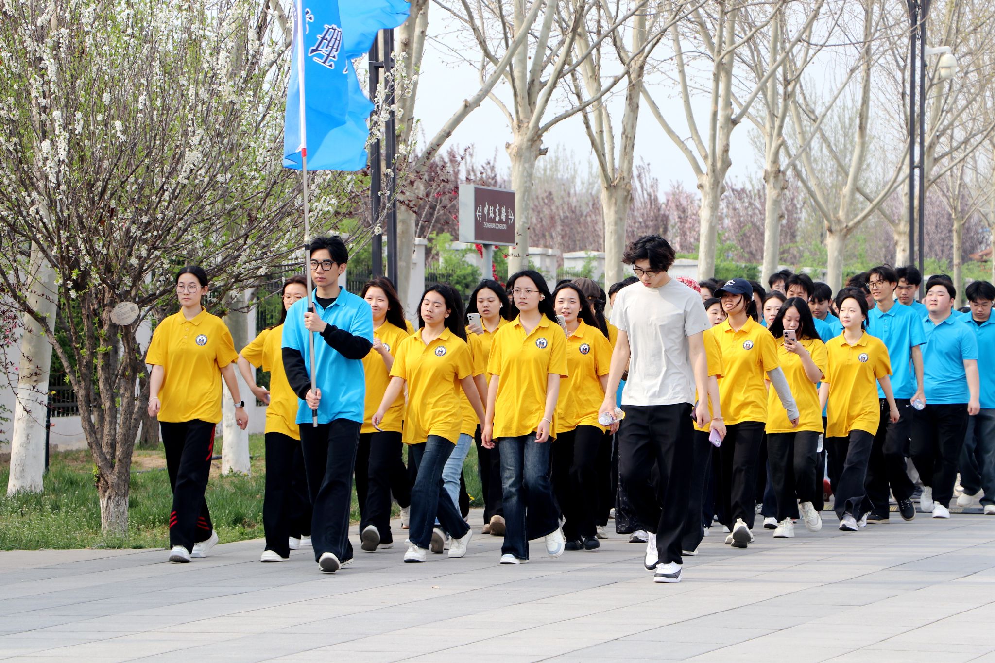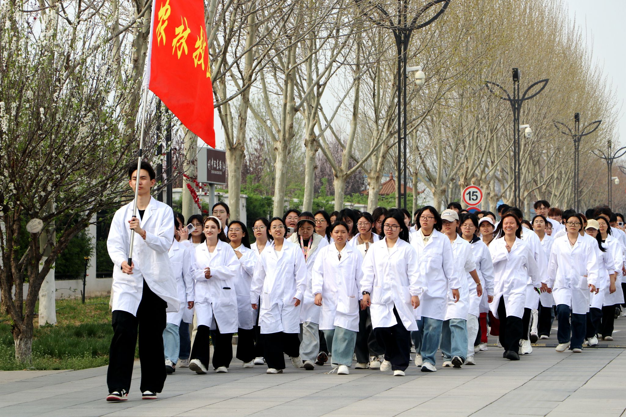 大众健身组的同学们步伐从容,笑语盈盈,结伴穿行于春意盎然的校园。