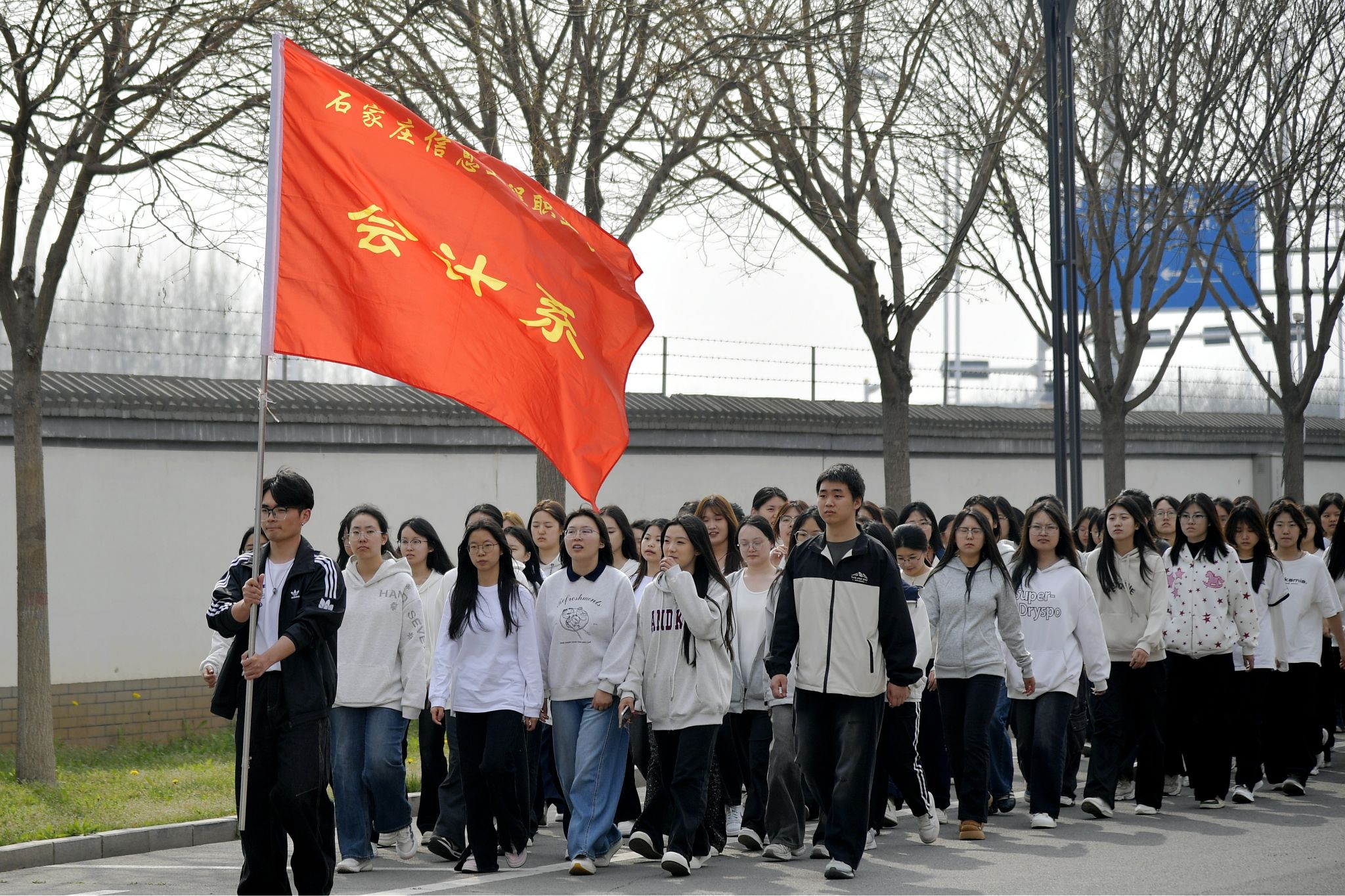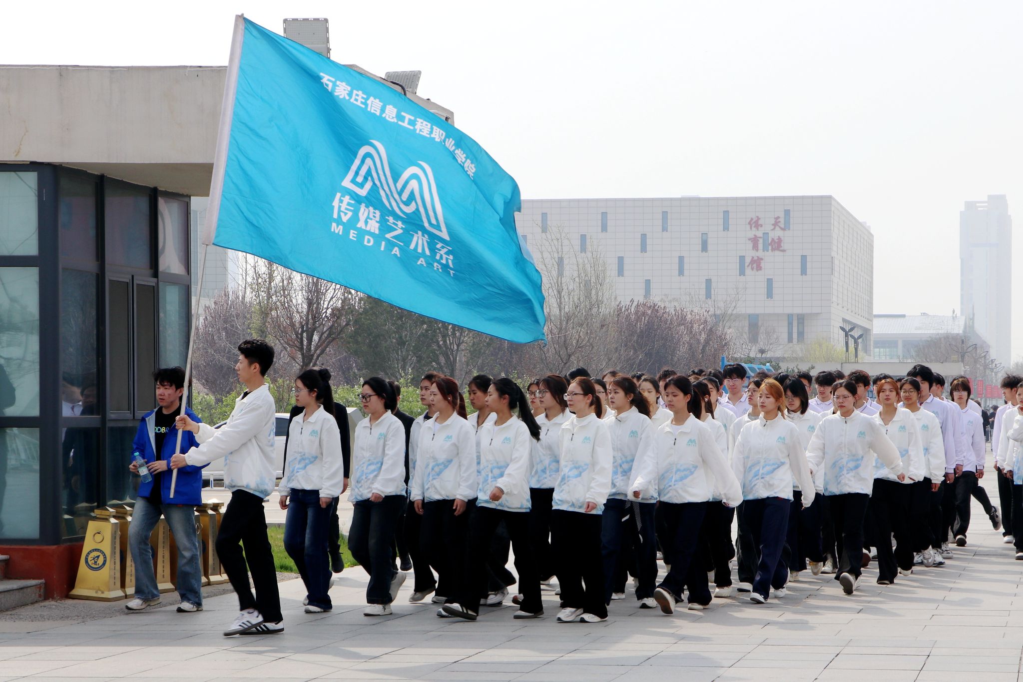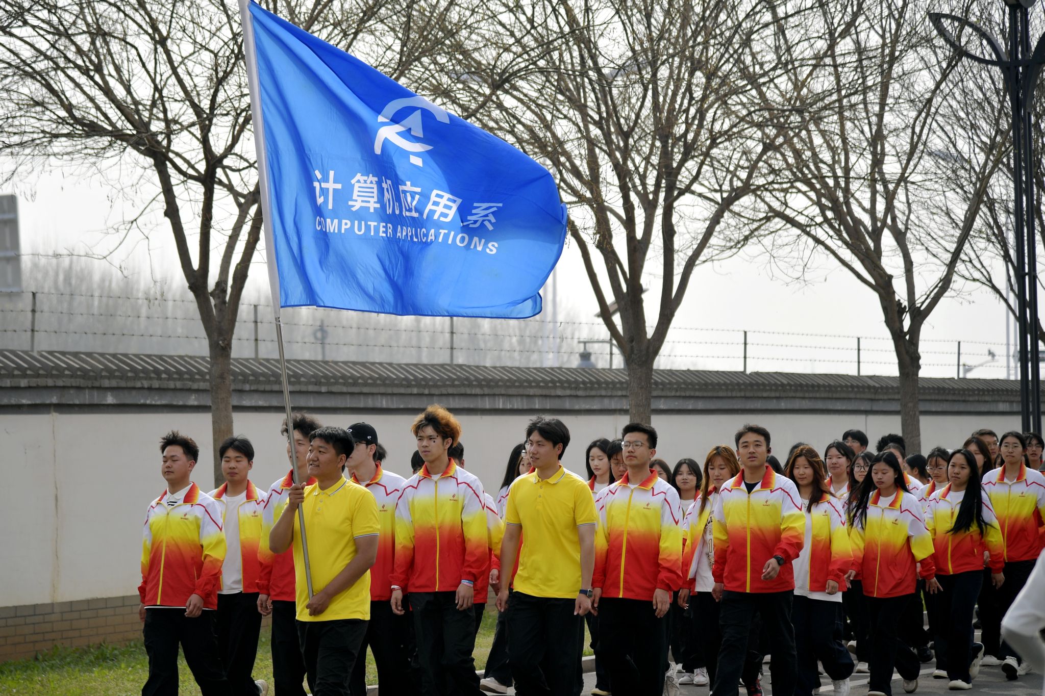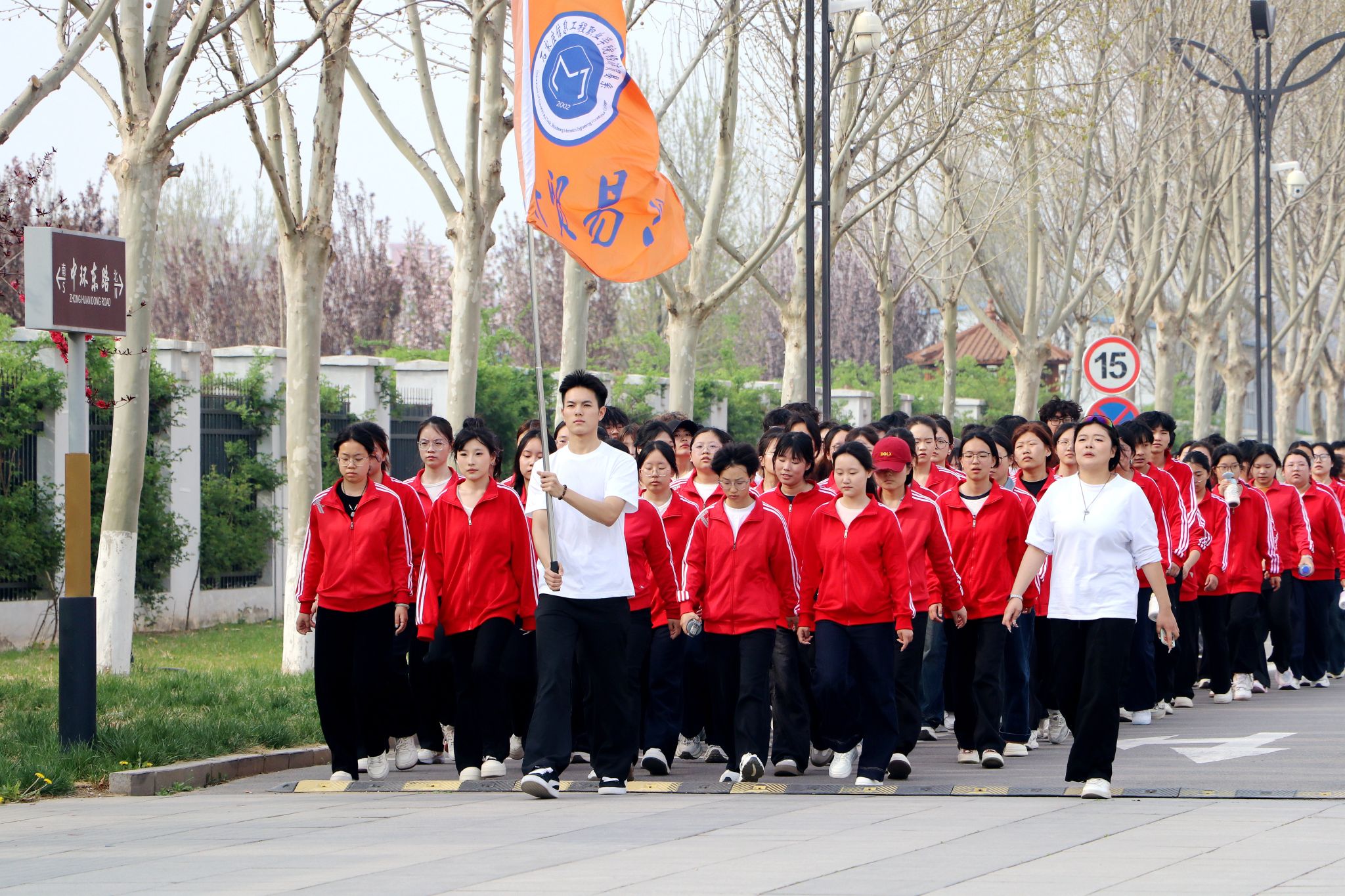 大众健身组的同学们步伐从容,笑语盈盈,结伴穿行于春意盎然的校园。