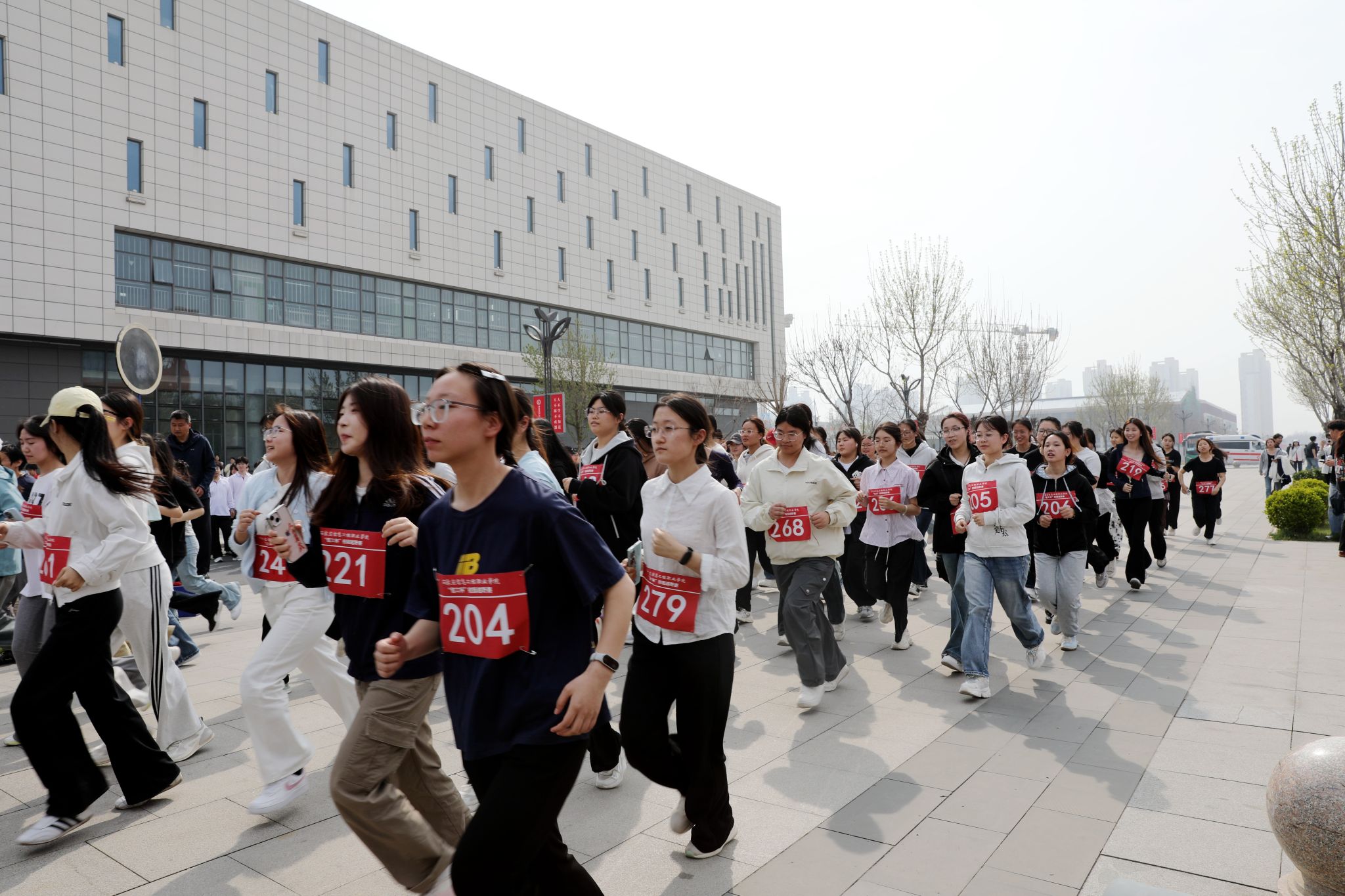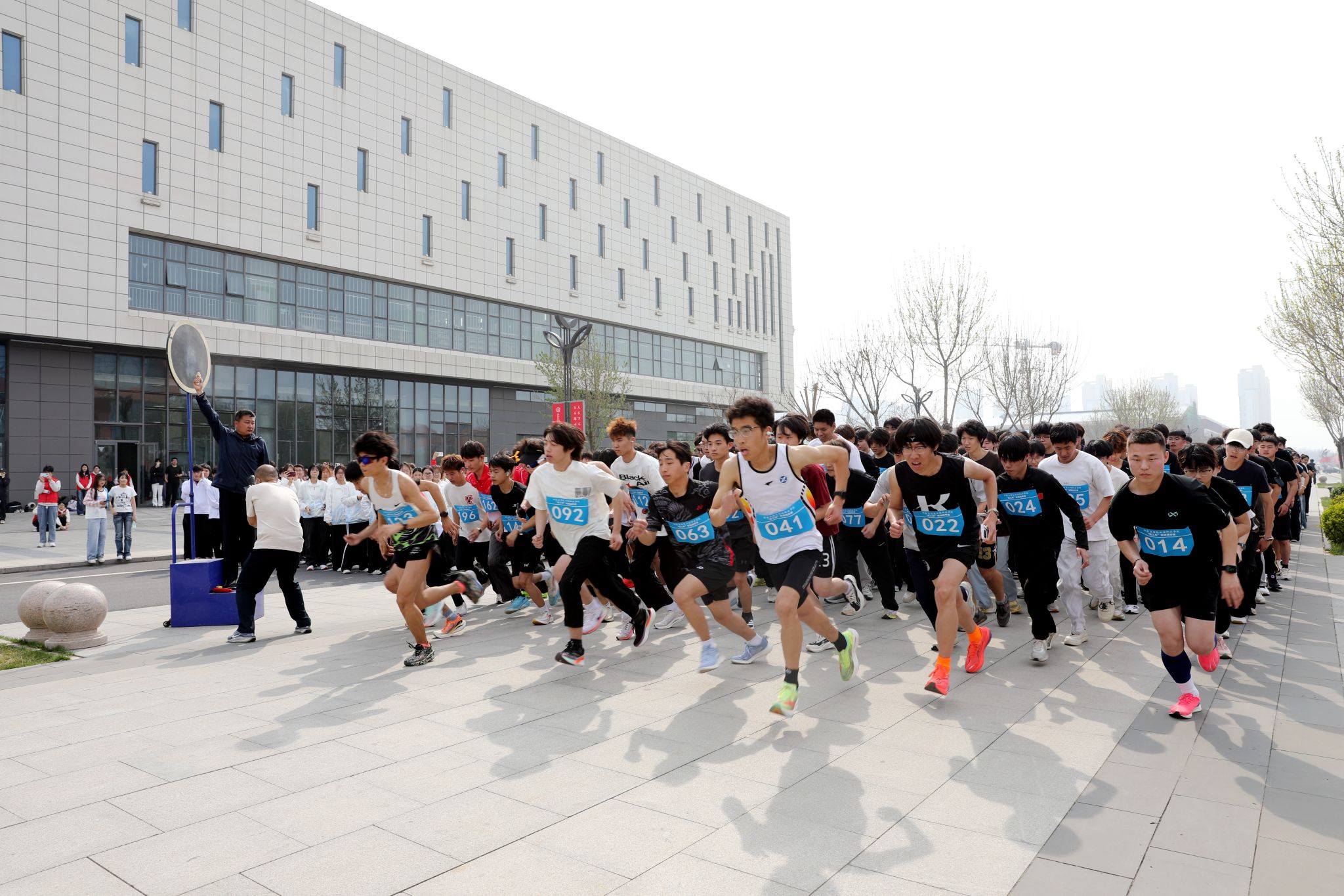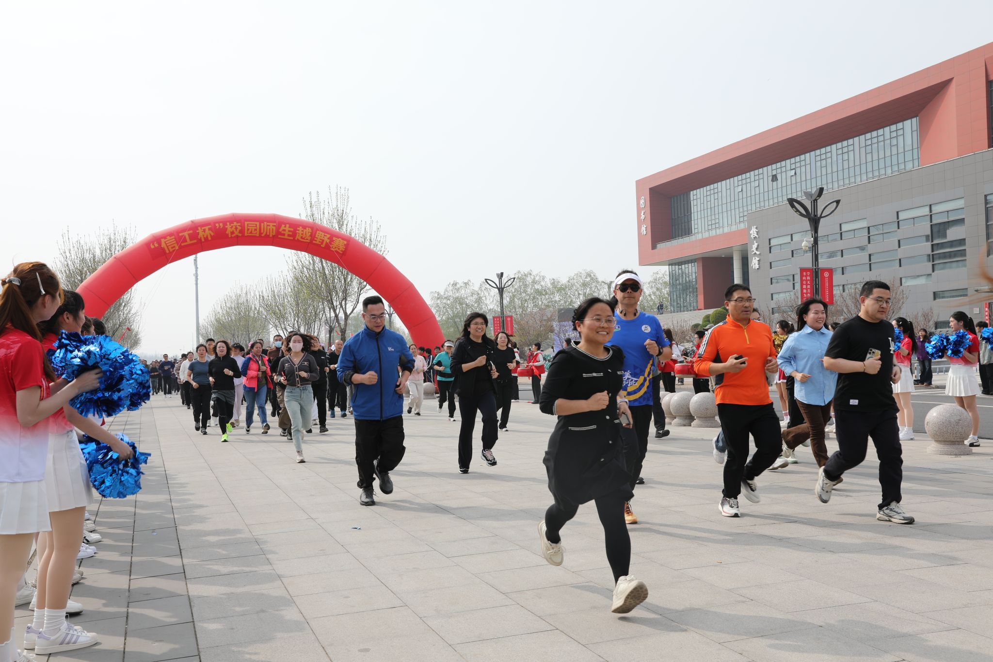 图书馆广场千余名师生整装待发,随着一声清脆的发令枪响,“信工杯”校园师生越野赛正式开跑,第八届体育节的大幕就此拉开。