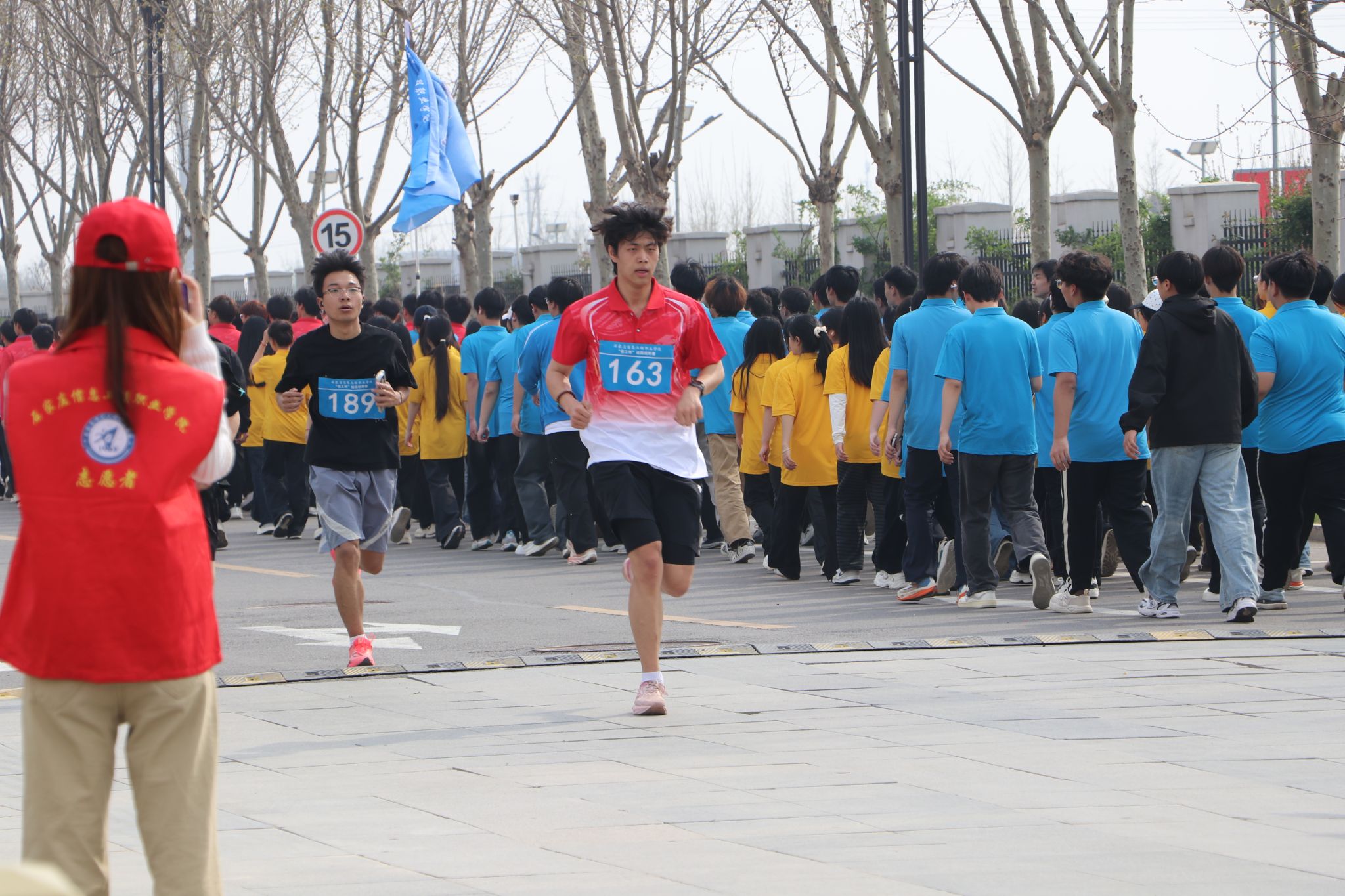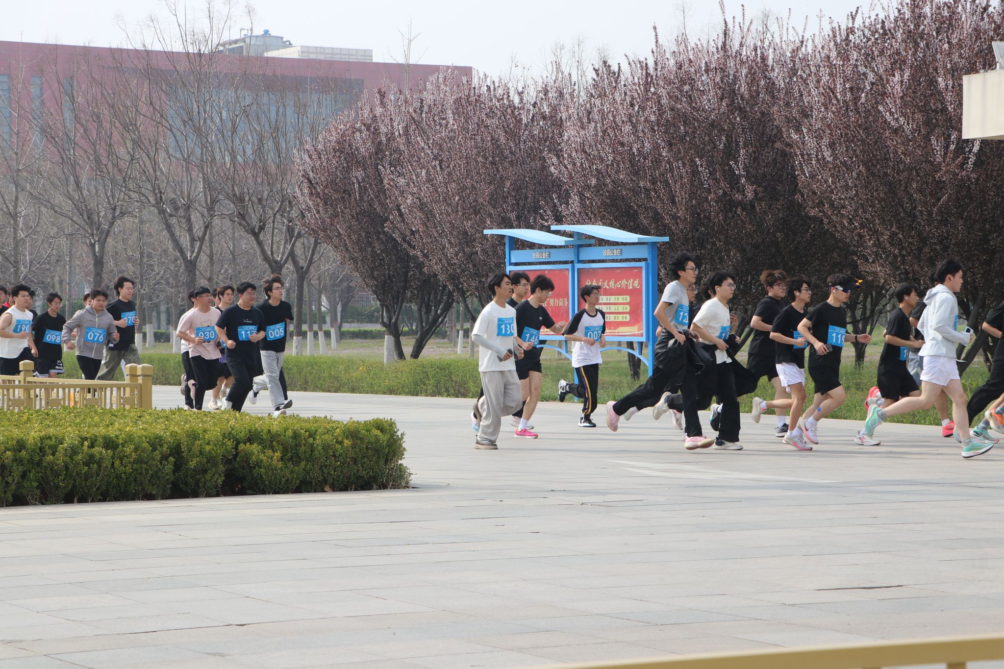 竞技组的健儿们如离弦之箭冲出起点,沿着校园主干道奋勇争先。春风拂过少年衣角,阳光洒在坚毅的脸庞。赛道上有人一马当先,有人咬牙追赶,每一次摆臂、每一次呼吸,都是意志与体能的交响;沿途观众呐喊助威、掌声不断,充分展示了越野跑的独特魅力。