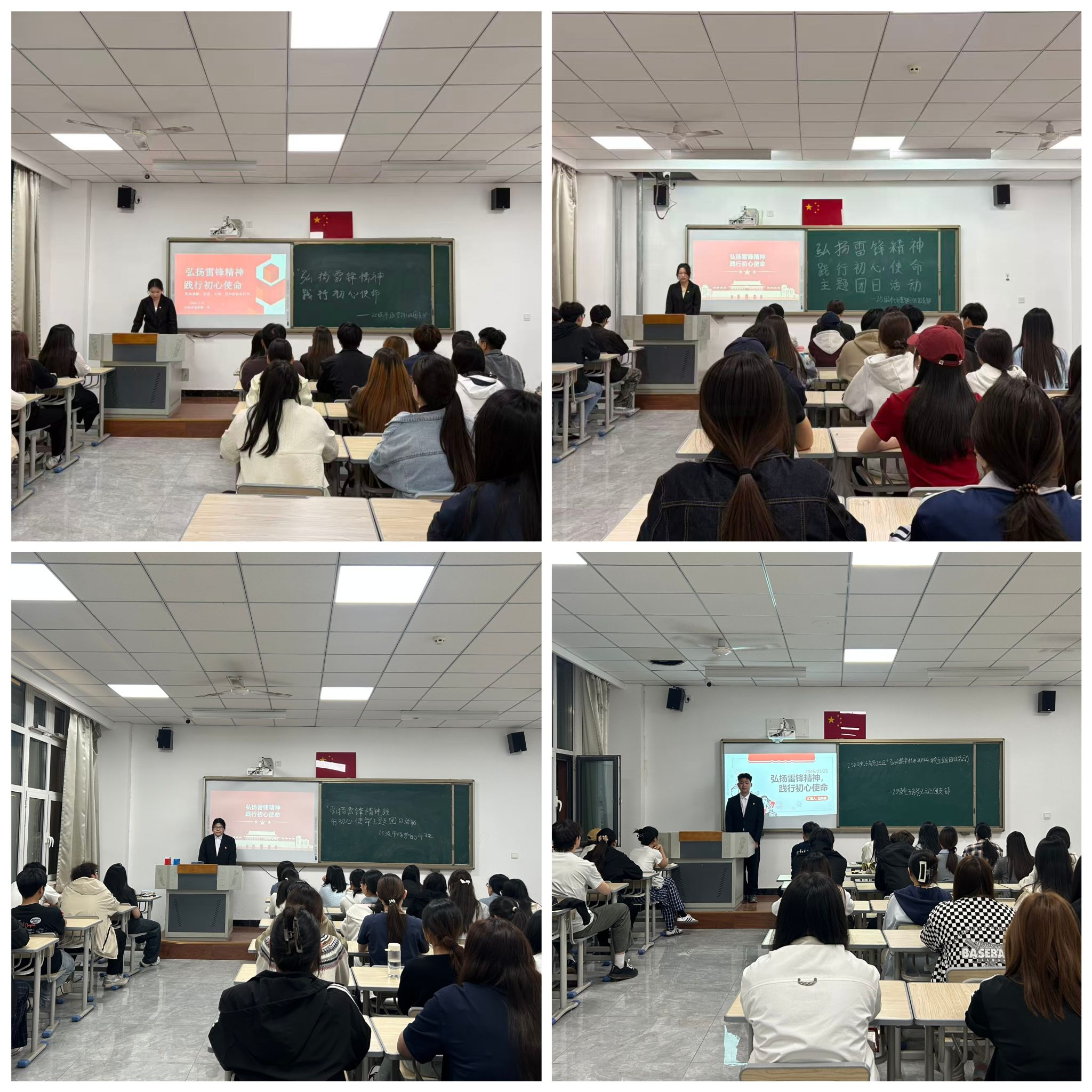 3月25日各团支部以“学雷锋精神”为契机,广泛开展“学雷锋精神,树时代新风”主题团日活动。通过开展主题团课、专题学习、学唱歌曲《学习雷锋好榜样》、雷锋故事分享等形式,引导青年学子感悟雷锋精神内涵。