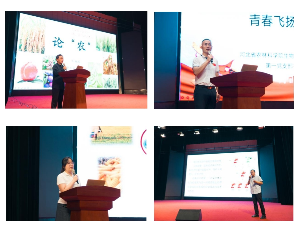 本次活动采用“科学家论农 思政教育 科普展示”三位一体的模式,为师生带来一场别开生面的科普盛宴。河北省农林科学院原副院长王海波以《论“农”》为题,从农耕文明溯源到现代农业展望,用深入浅出的讲解展现了农业文明的博大精深;朱金永书记以《青春之问,奋斗作答》为主题,结合12年军旅生涯和农业科研经历,为师生带来一堂感人至深的思政课;赵璞博士、周硕副所长分别就玉米育种发展、转基因技术应用等农业科技前沿领域作了精彩报告。